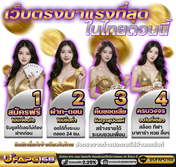 UFAPG168 เว็บพนันออนไลน์ที่ครบวงจร นำเสนอประสบการณ์การเดิมพันที่หลากหลายในแพลตฟอร์มเดียว ด้วยระบบที่ทันสมัยและปลอดภัย พร้อมให้บริการตลอด 24 ชั่วโมง ไม่ว่าจะเป็นการแทงบอล คาสิโนสด สล็อตออนไลน์ หรือเกมพนันรูปแบบอื่นๆ ระบบฝาก-ถอนอัตโนมัติที่รวดเร็วทันใจ รองรับการทำธุรกรรมผ่านธนาคารชั้นนำและ E-Wallet ทุกช่องทาง มาพร้อมโปรโมชั่นสุดพิเศษสำหรับสมาชิกใหม่และสมาชิกปัจจุบัน อัพเดทอัตราต่อรองและราคาบอลแบบเรียลไทม์ พร้อมระบบถ่ายทอดสดคุณภาพสูง ให้คุณสัมผัสประสบการณ์การเดิมพันที่เหนือระดับ